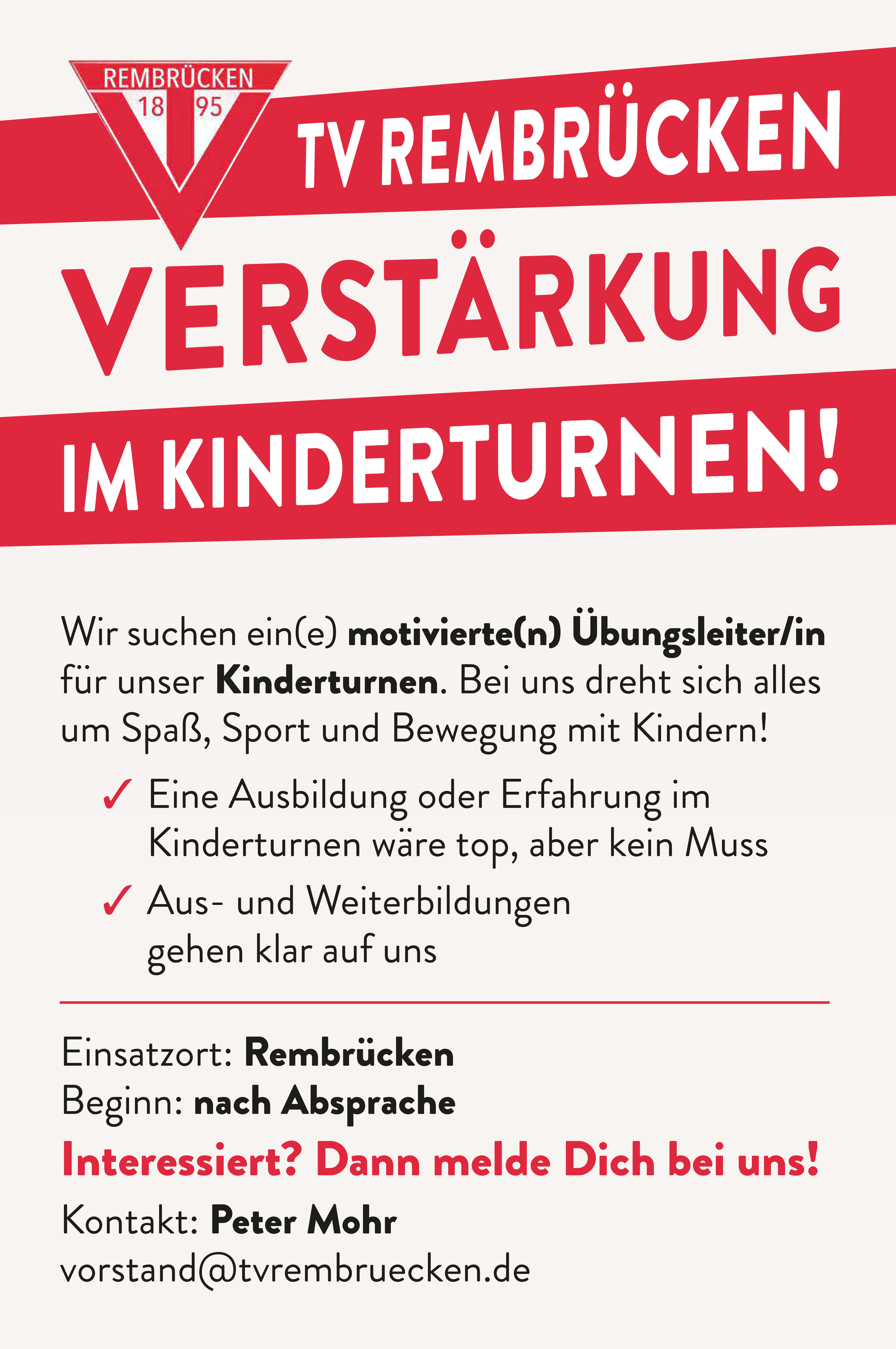 Werde auch Du Mitglied beim TV Rembrücken 1895 e.V. und werden Teil einer starken Gemeinschaft.