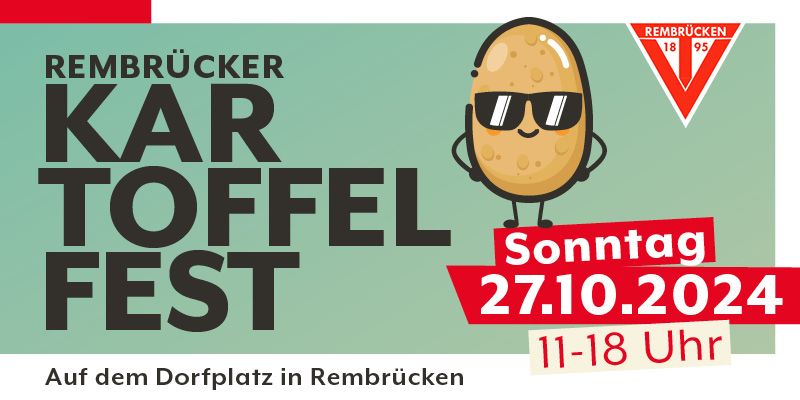 Am Sonntag, den 27. Oktober 2024, findet ab 11 Uhr wieder das herbstlich bunte Kartoffelfest des TV Rembrücken auf dem Dorfplatz zwischen Kirche und Alter Schule statt. Das vielfältige und leckere Essensangebot geht über die klassische Pellkartoffel mit Kräuterquark, Heringssalat oder Hausmacher Wurst weiter über goldbraun gebratene Kartoffelpuffer mit Apfelmus oder Lachscreme, ebenso wie den hausgemachten Kartoffelsalat mit oder ohne Würstchen. Fehlen dürfen auch selbstverständlich nicht Pommes mit Ketchup oder Majo. Aus der schon früh am Morgen angefeuerten Kanone gibt es die traditionelle Kartoffelsuppe. Zum Nachtisch und zur Kaffeezeit gibt es dann in der Alten Schule den beliebten selbst gebackenen Kuchen.